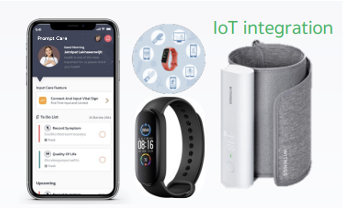 ด้วยอุปกรณ์ตรวจสอบภาวะด้านสุขภาพที่ทันสมัย ทำให้ผู้ป่วยสามารถได้รับการสนับสนุนทางการแพทย์ที่มีคุณภาพได้จากบ้านของตนเองและสามารถขอความช่วยเหลือได้ทุกเวลาที่ต้องการตามความจำเป็นอย่างเหมาะสม จากทีมบุคลากรทางการแพทย์ที่เชี่ยวชาญ