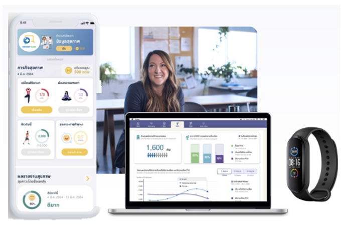 เช่น การออกกำลังกาย การรับประทานอาหาร การบริหารอารมณ์ รวมถึงการช่วยออกแบบแผนการดูแลสุขภาพให้พนักงานแบบรายบุคคล และสามารถติดตามข้อมูลสุขภาพผ่านอุปกรณ์ wearable device เช่น smart watch พร้อมรายงานผลเชิงสถิติที่เชื่อถือได้